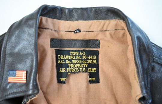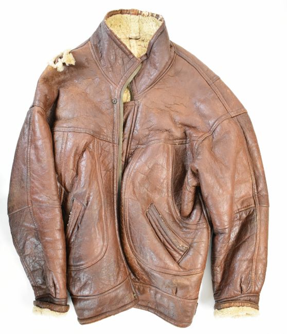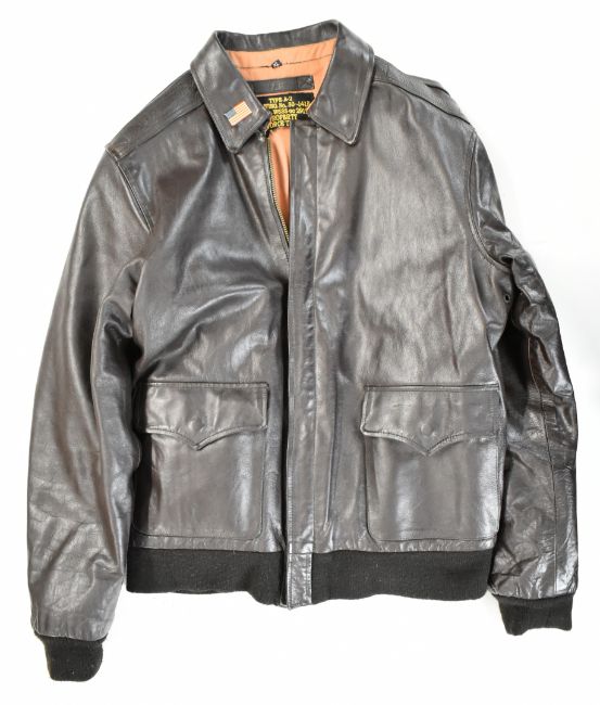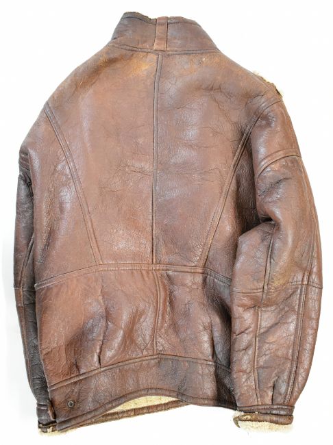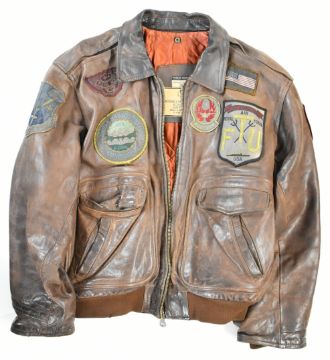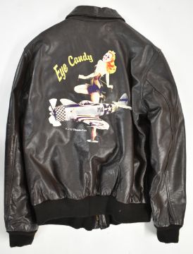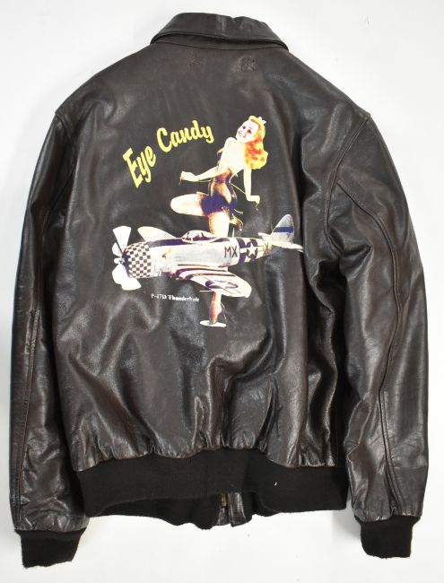 Three re-enactment leather full zip jackets comprising two US Air Force examples (XL) with patches and insignia, the other plain with fur lining