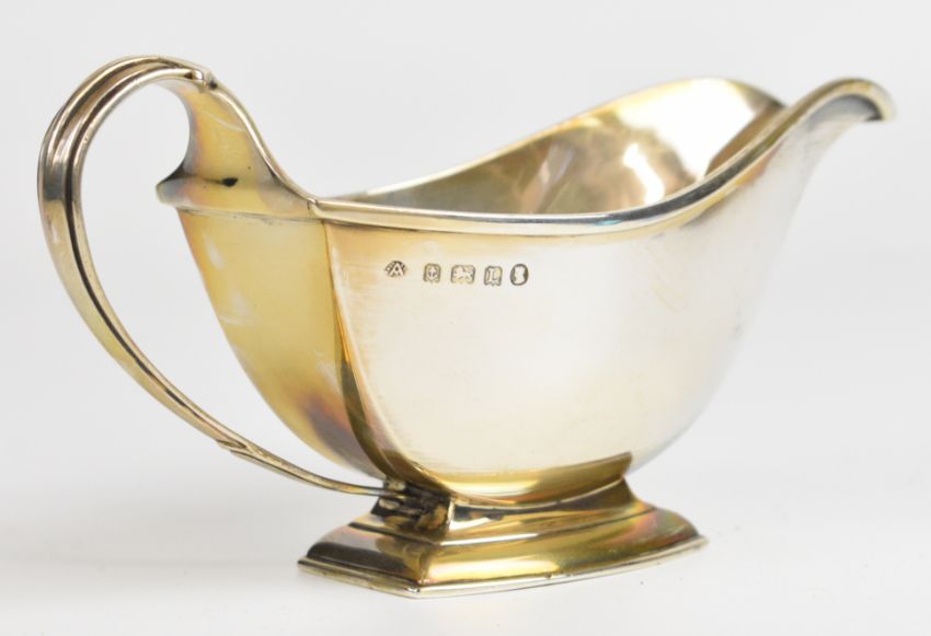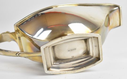 Art Deco hallmarked silver sauce boat, Birmingham 1935, maker Adie Brothers Ltd, length 18cm, weight 222g