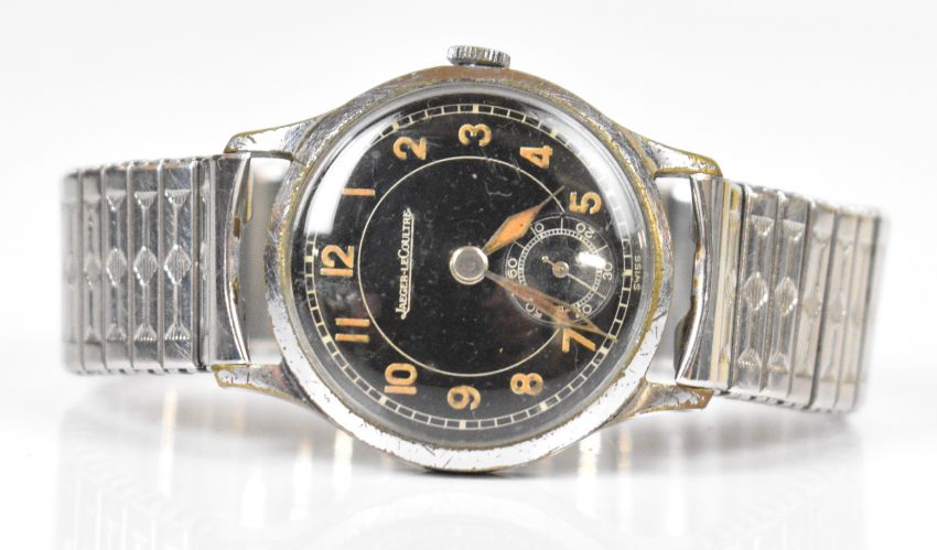 Jaeger LeCoultre military style gentleman's wristwatch with subsidiary seconds dial, luminous hands and Arabic numerals, black dial and signed calibre P469 movement, on expanding metal bracelet, case diameter 31mm, serial number 307050.