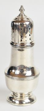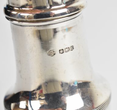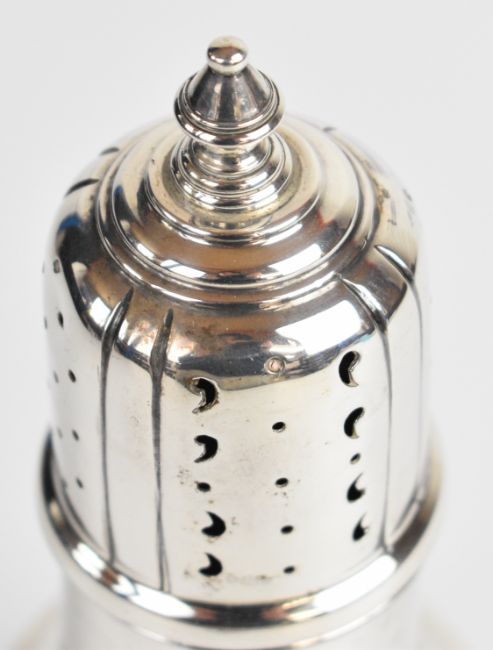 George VI hallmarked silver sugar caster of baluster form, Sheffield 1936, maker William Hutton & Sons Ltd, height 18cm, weight 147g