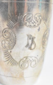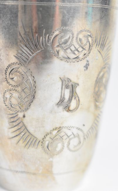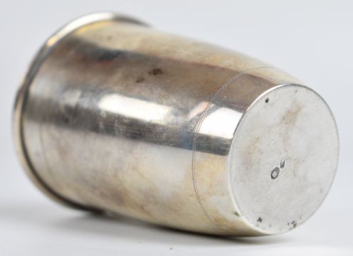 Hungarian 800 grade silver beaker with engraved decoration, height 8cm, weight 51g