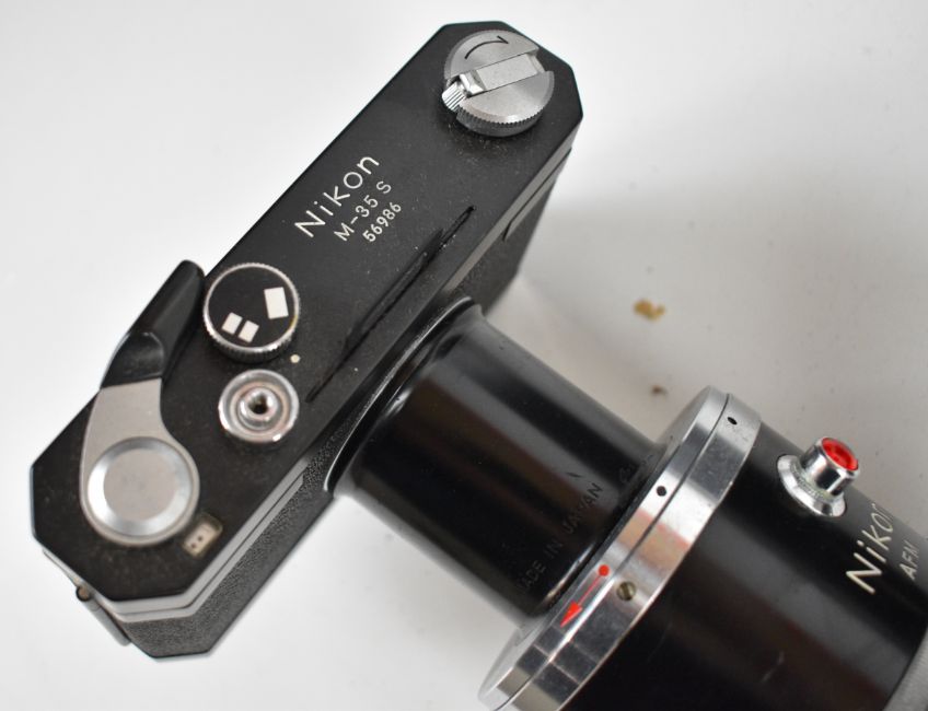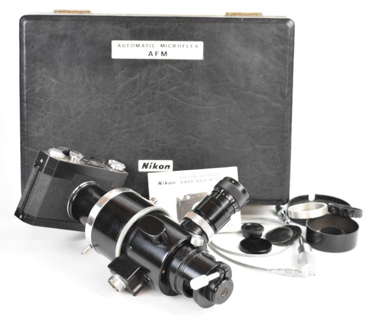 Nikon Microflex camera comprising M-35 S dark box or body, main AFM attachment, Carl Zeiss lens, case etc