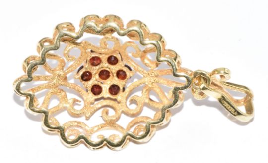 A 14k gold pendant set with a cluster of garnets, 6.1g, 4.1 x 2.2cm