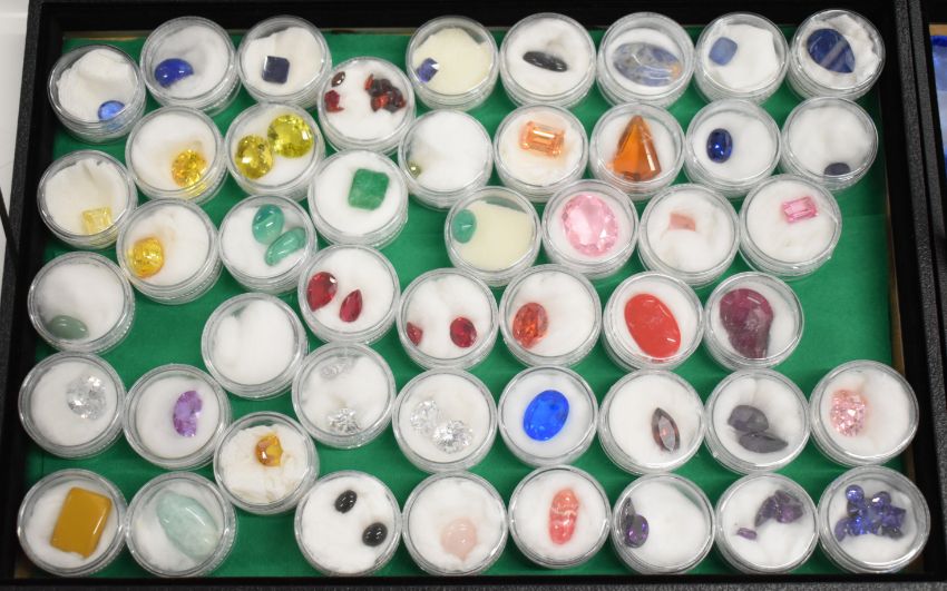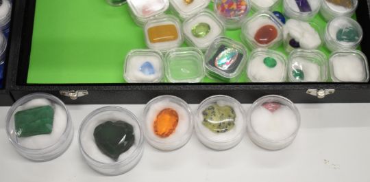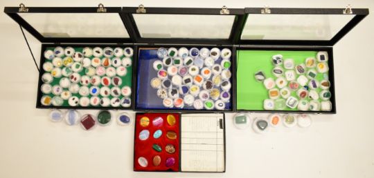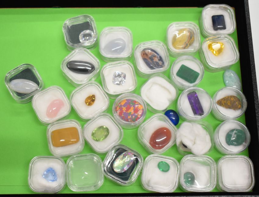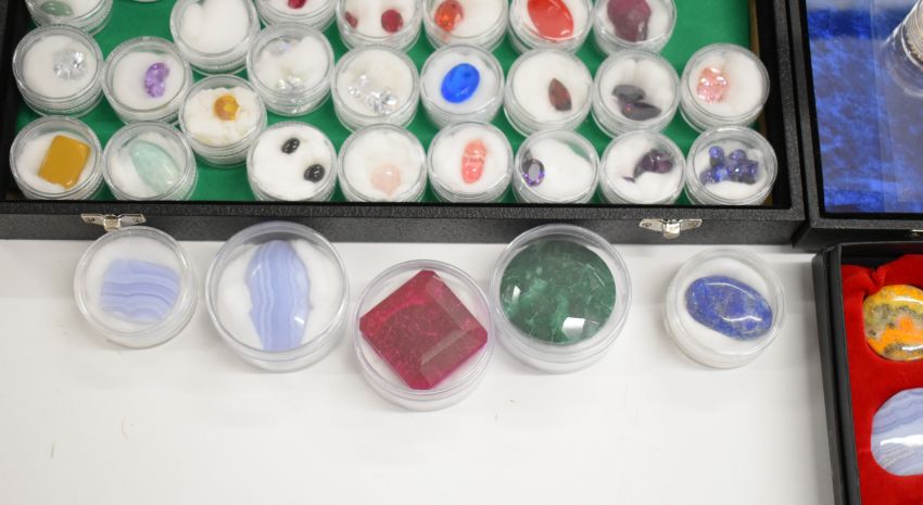 A collection of loose gemstones including jasper, lace agate, a 211ct heart cut emerald, 137ct emerald, 130ct ruby, 300ct emerald and 68ct citrine, 78ct lapis lazuli cabochon, amazonite, rose quartz, synthetic sapphires, amethyst, cubic zirconia, synthetic sapphire, synthetic rubies, synthetic pink sapphire, 14ct emerald, oval cut garnets (45ct), labradorite, amethysts (25ct), etc