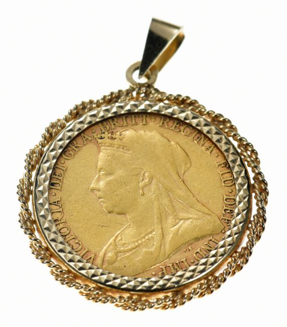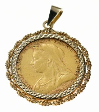 1894 gold full sovereign with Melbourne mint mark, in 9ct gold pendant mount, 9.8g