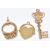 Three 9ct gold charms in the form of a key, a wedding band and engagement ring and a swivel 'I love you', 5.1g