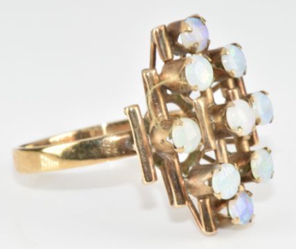 A 14k gold ring set with nine round cut opal cabochons, 4.1g, size T