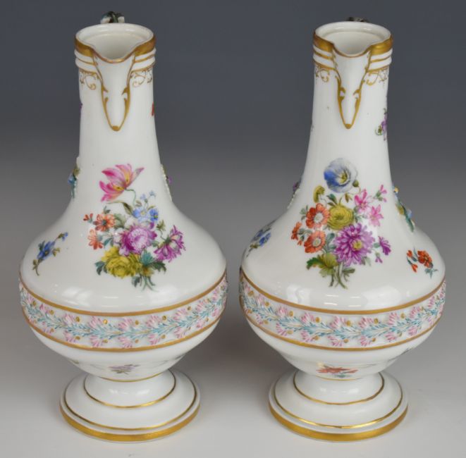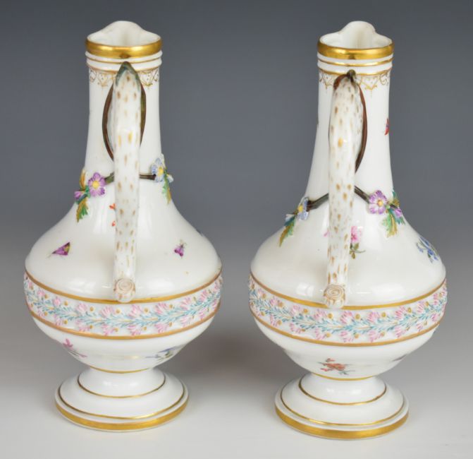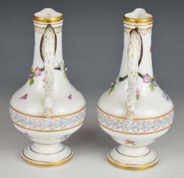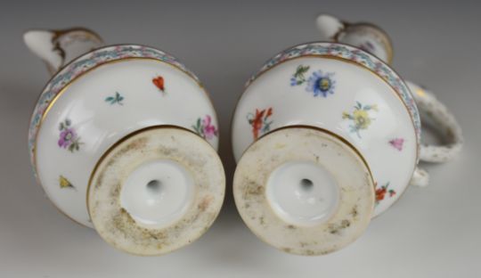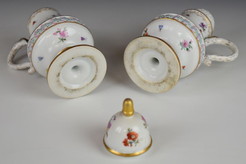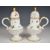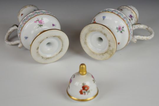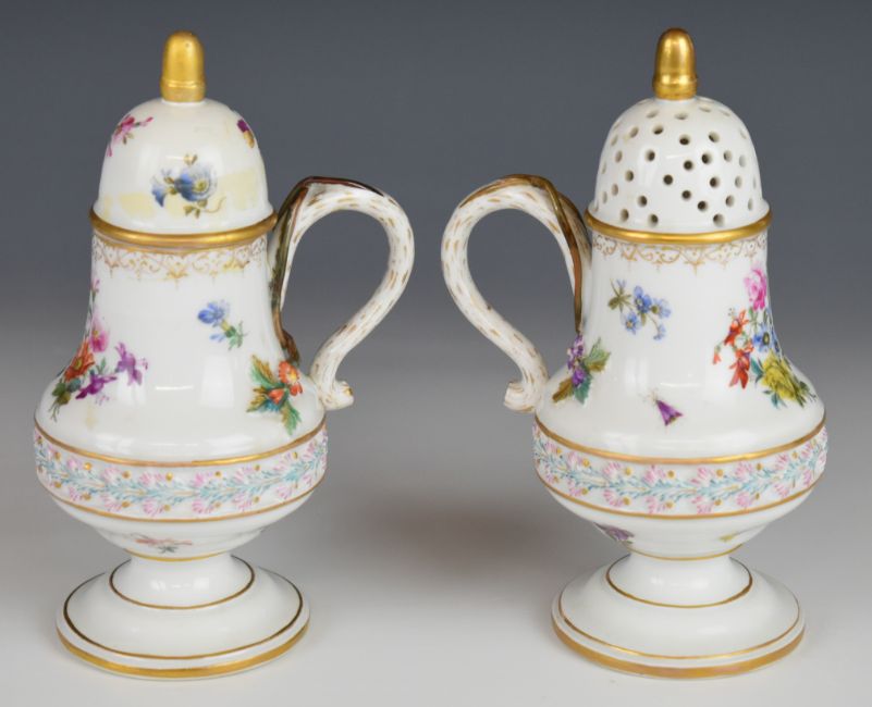 19thC German / continental four piece porcelain strawberry set with hand decoration of flora, fauna and central relief moulded frieze, possibly Herend or Meissen, tallest 15.5cm