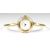 Gucci gold plated ladies wristwatch ref. 11/12.2 with gold hands, white dial, cut steel bezel and quartz movement, on gold plated bangle bracelet, case diameter 26mm, serial number 1211980.