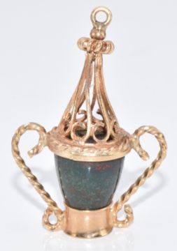 A 9ct gold charm in the form of a lamp set with bloodstone, 5.3g, 3.5cm
