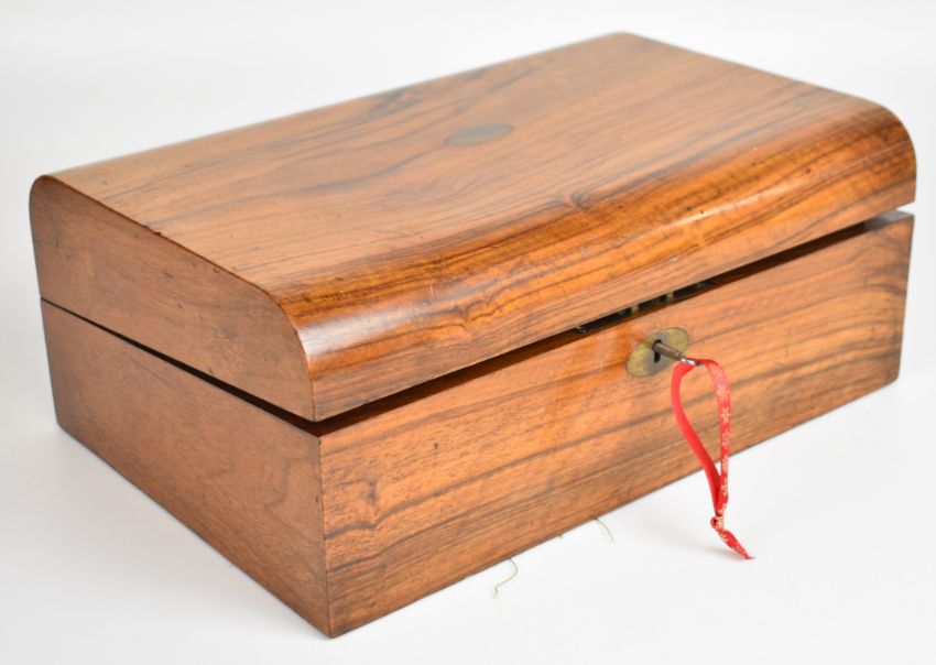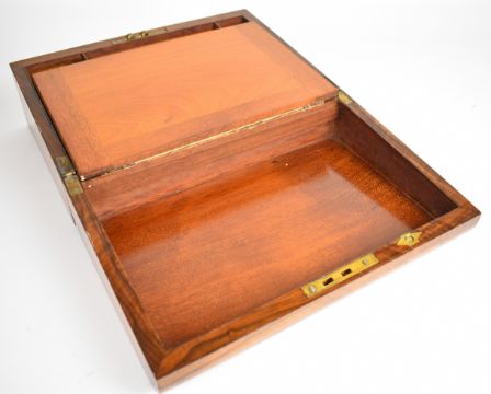 19th century walnut writing slope opening to reveal a tooled leather writing surface, inkwell and pen tray, overall width 35.5cm