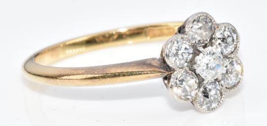 A c1910 18ct gold ring set with a cluster of old cut diamonds, 2.5g, size N