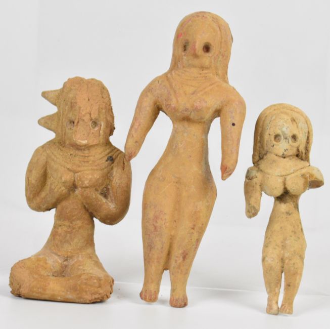 Antiquities, three terracotta / pottery Indus valley fertility figures etc., tallest 12cm