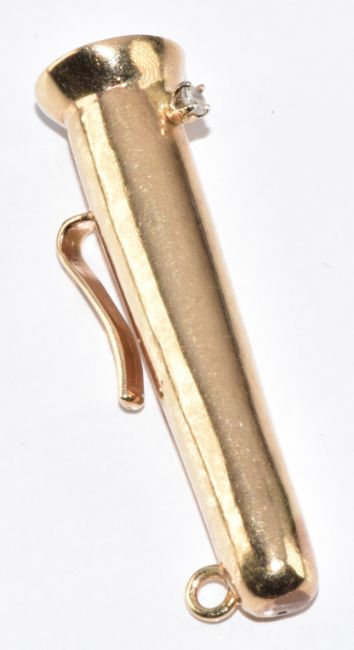 A bespoke 9ct gold posy holder set with a diamond, 8.1g, 3.8cm