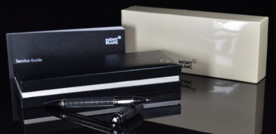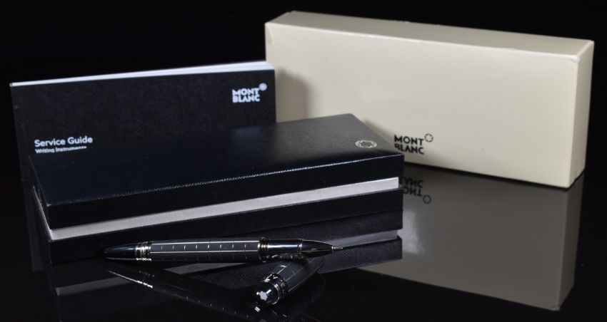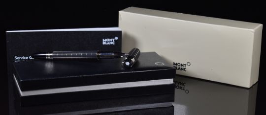 Montblanc Starwalker ballpoint pen with steel and rubber body and platinum plated fittings, in original box with rollerball refill, outer card sleeve and Service Guide.