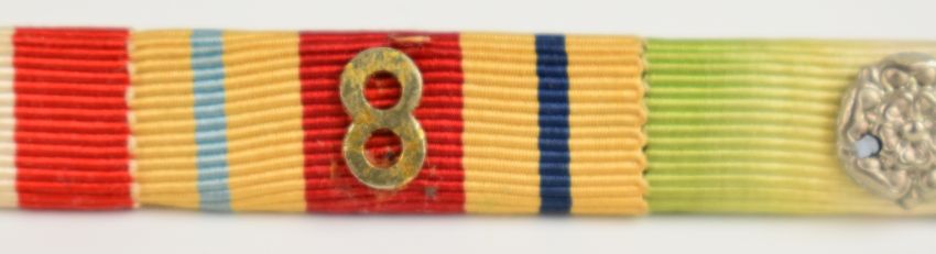Ten British WW2 medals comprising 1939-45 Star, Atlantic Star with clasps for Air Crew Europe and France and Germany, Italy Star, France and Germany Star, Africa Star with clasps for North Africa 1942-43, 1st and a reproduction 8th Army, Pacific Star with Burma clasp, Burma Star, reproduction Air Crew Europe Star, Defence Medal and War Medal 1939-45 with Mentioned in Dispatches (MID) oak leaf to ribbon, together with some bars, etc
