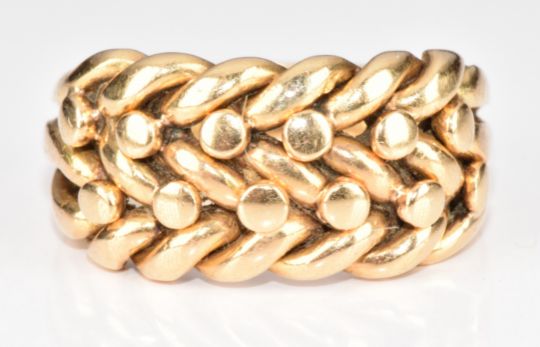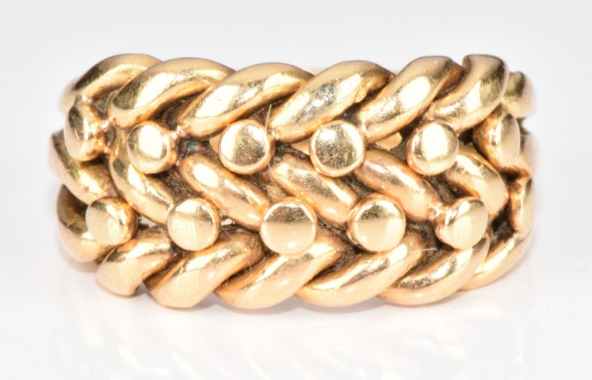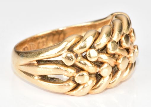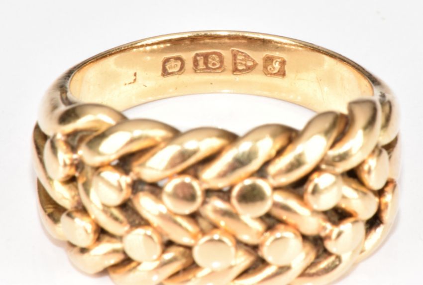 An 18ct gold keeper ring, Chester 1909, 10g, size L