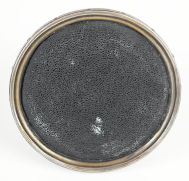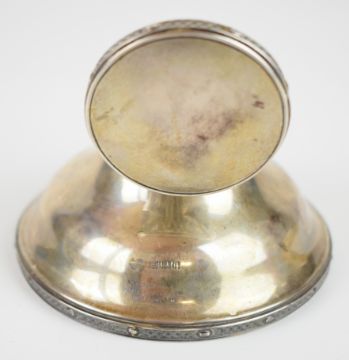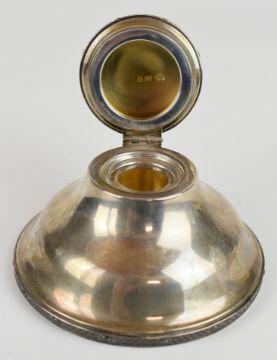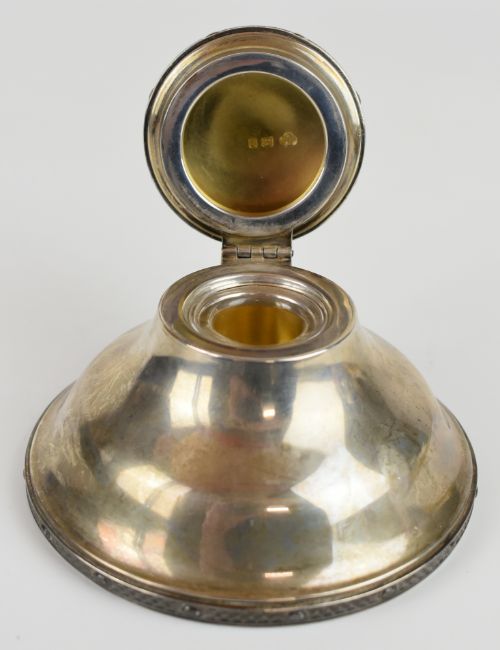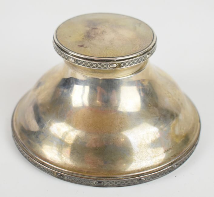 Goldsmiths & Silversmiths Co Ltd George V hallmarked silver capstan inkwell with gilt wash interior and clear glass liner, London 1919, diameter 10cm