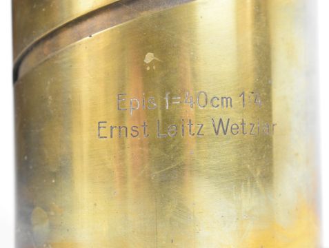 Ernst Leitz Wetzlar Epis f=40cm 1:4 projector or similar lens, overall diameter of mounting flange 13.5cm, minimum length 13.5cm