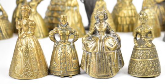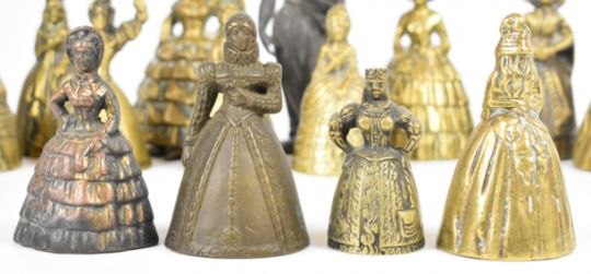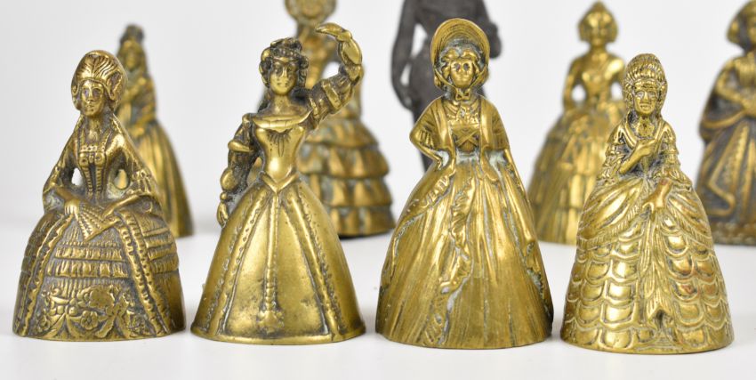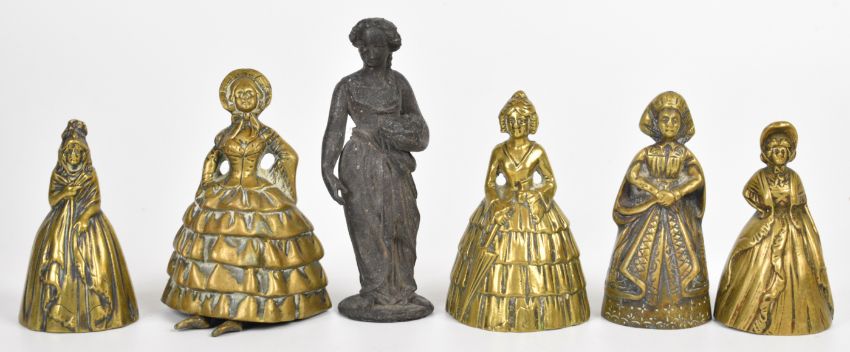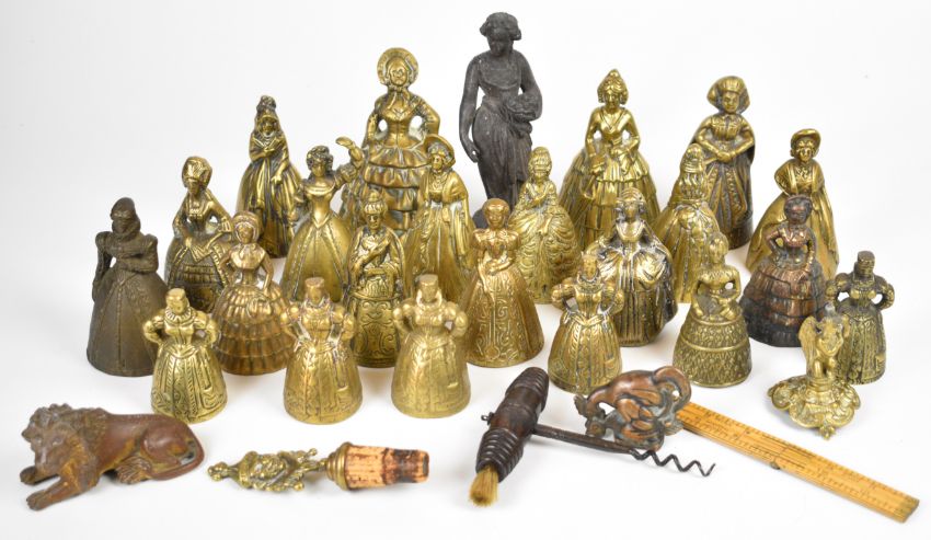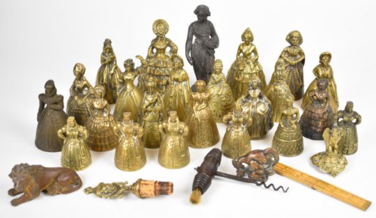 A collection of 19th/20thC brass figural bells, other brass figures etc, tallest 15cm