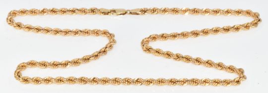 A 9ct gold rope twist necklace, 10.4g, 52cm