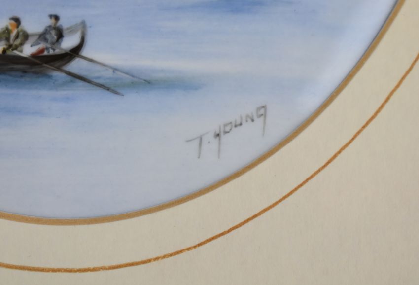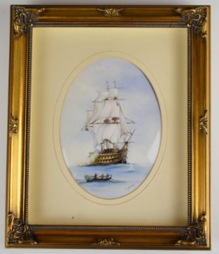 Bronte porcelain plaque of an 18th/19thC Man of War sailing ship, signed by ex Royal Worcester artist Tony Young, 18 x 13cm
