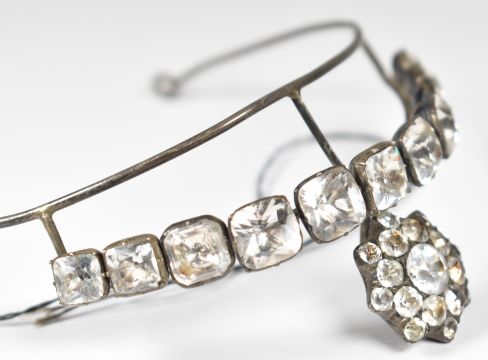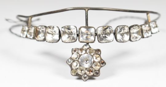 Georgian child's tiara set with black dot foiled paste, 7.5 x 4cm
