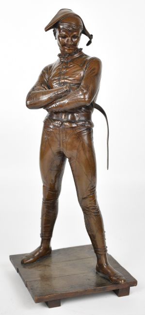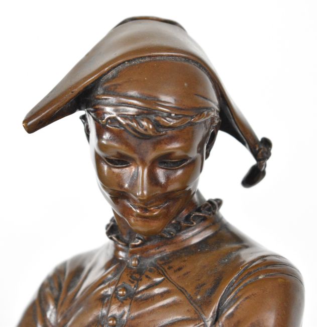 After Charles Rene de Paul Saint-Marceaux (French 1845-1915) bronze L’Arlequin (Harlequin), the rear of the base signed ‘F. Barbedienne, Fondeur, Paris’ and with reduction mechanique mark, height 42cm