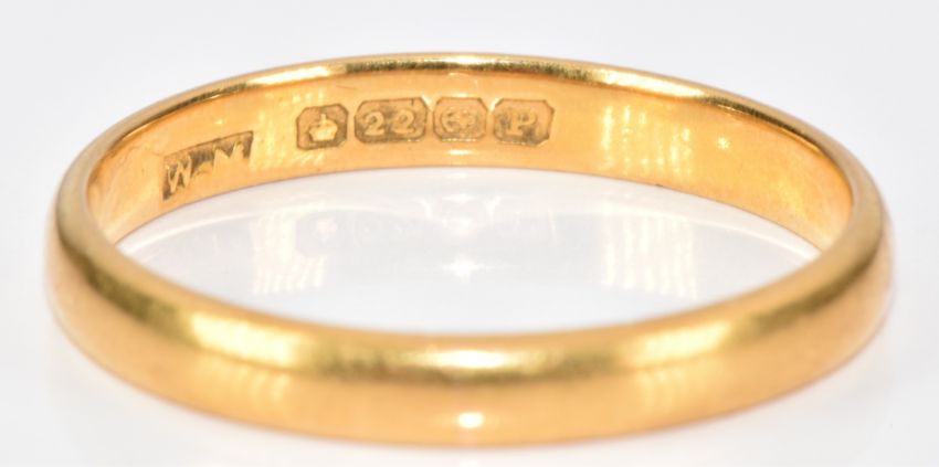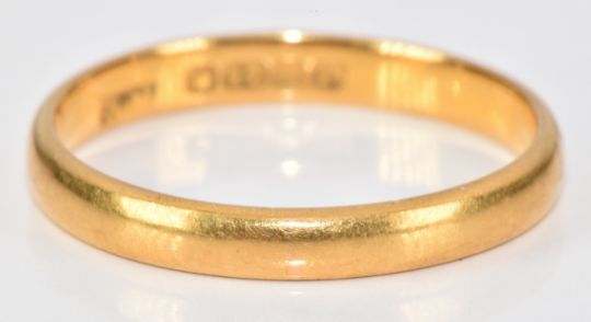 A 22ct gold wedding band / ring, Birmingham 1939, 2.5g, size N