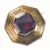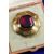 Victorian yellow metal octagonal brooch with Greek key decoration set with an octagonal foiled garnet, verso a glass compartment, in original box, 24g, 4.2cm