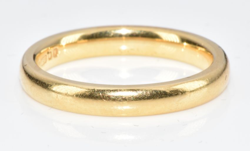 An 18ct gold wedding band / ring, 4.5g, size L/M