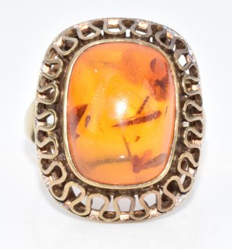 A .333 gold ring set with a pressed amber cabochon, 5.7g, size M