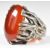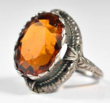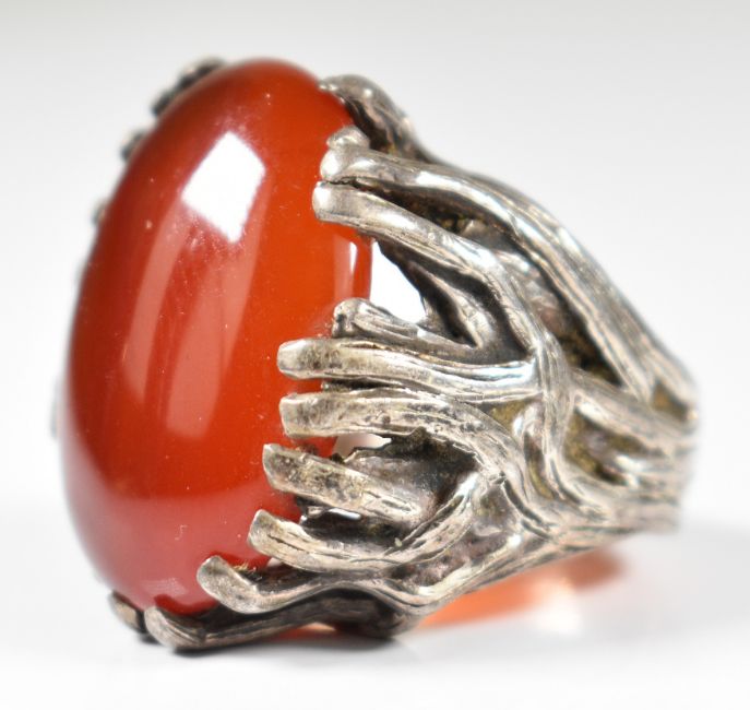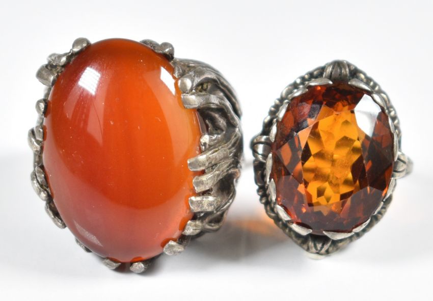 A silver ring with textured shoulders and set with carnelian agate, and a silver ring set with an oval cut citrine, 28.8g, size N & M