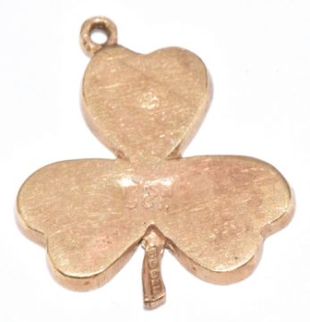 A 9ct gold pendant in the form of a shamrock set with Connemara marble, 1.4g, 1.8cm