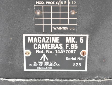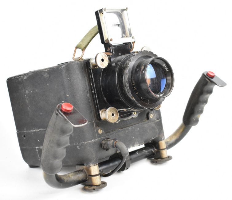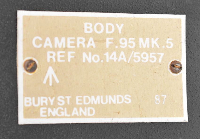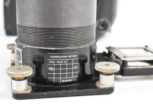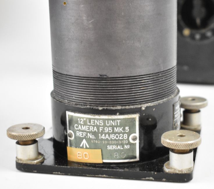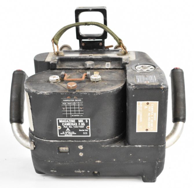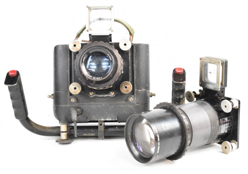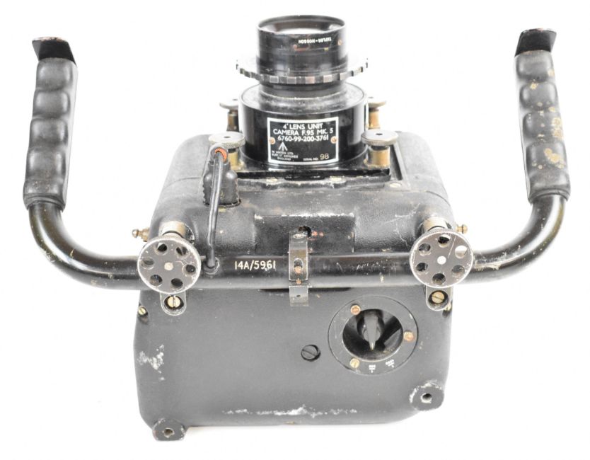 W.Vinten Bury St. Edmunds F95 Mk 5 RAF or similar MOD aerial reconnaissance camera with twin handle grip and Taylor Hobson 4" and 12 inch f/4 lenses