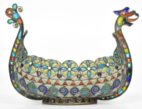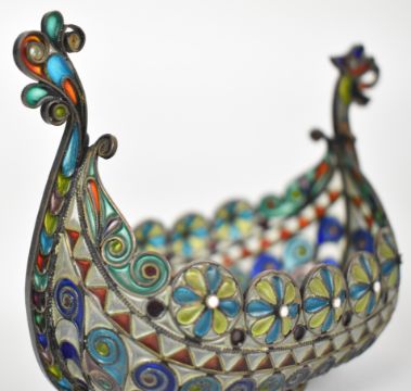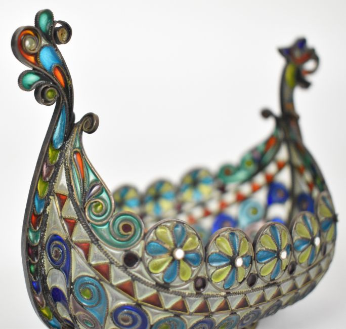 Marius Hammer silver gilt and plique-à-jour enamel Viking boat, signed and impressed 925 to base, L11 x H8cm, weight 73g