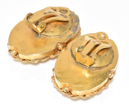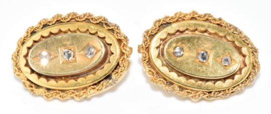 A pair of yellow metal earrings set with rose cut diamonds (test as 14k), 8.9g, 2.2cm