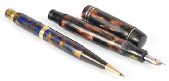 Ten fountain pens and propelling pencils including Waterman, Platignum, The De La Rue Pen, Mabie Todd Blackbird and sterling silver Yard O Led, one in original box.