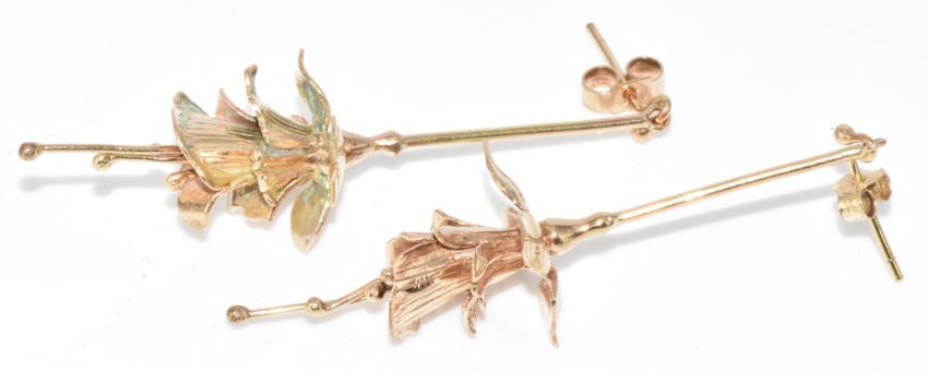 A pair of 9ct gold earrings in the form of a fuchsia flower, 6.1g