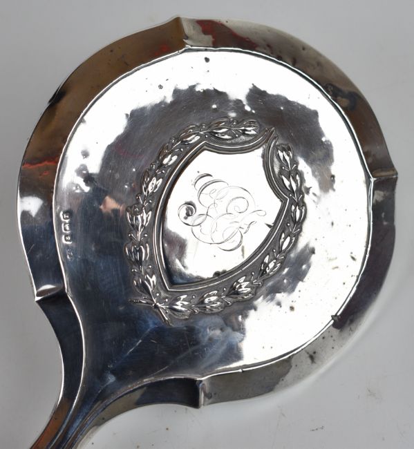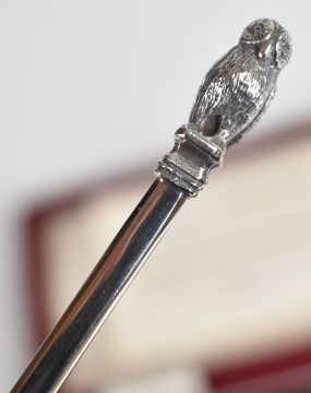 Cased replica 1506 hallmarked silver spoon with owl finial, London 1971, maker C J Vander Ltd, length 13.5cm, weight 32g, together with a hallmarked silver backed hand mirror