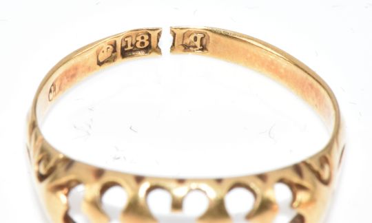 Two 18ct gold ring mounts, 6.3g, one hallmarked Birmingham 1876