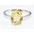 A 9ct white gold ring set with an oval cut synthetic yellow sapphire, in Art Deco box, 1.8g, size J