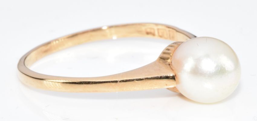An 18ct gold ring set with a pearl, 2g, size K