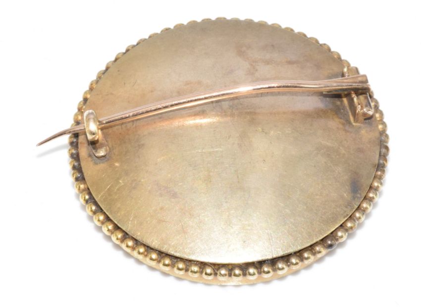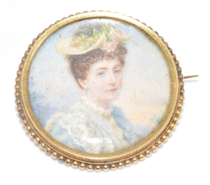 Victorian brooch set with an ivory portrait miniature of a young woman, 16g, 3.5cm. Ivory exemption certificate 5NVLN2GT
