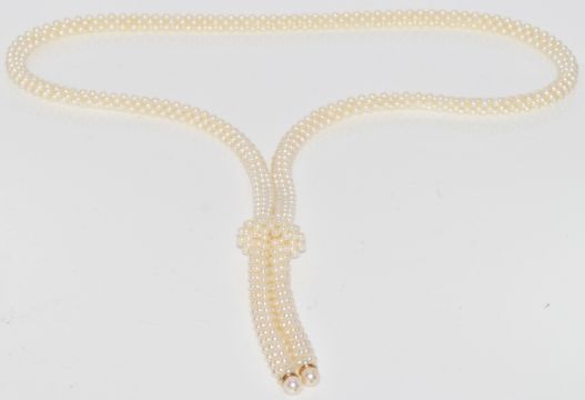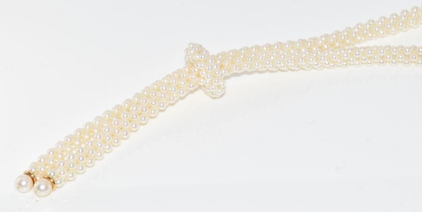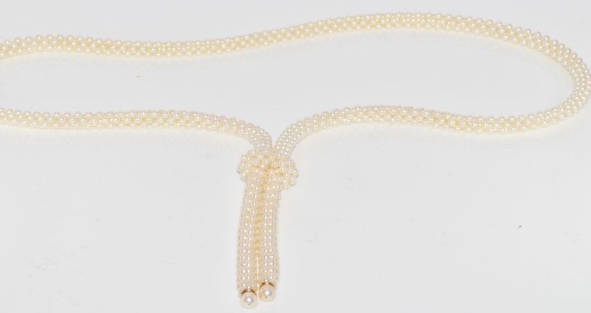 Art Deco style cultured pearl necklace with moving slider, 80cm