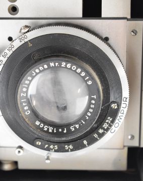 G.H. Williamson Photographic Appliances Ltd Wheatley, Oxford large format or plate camera, with Carl Zeiss Jena Tessar 1:4.5 f=13.5cm lens and Compur shutter