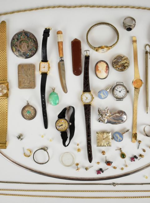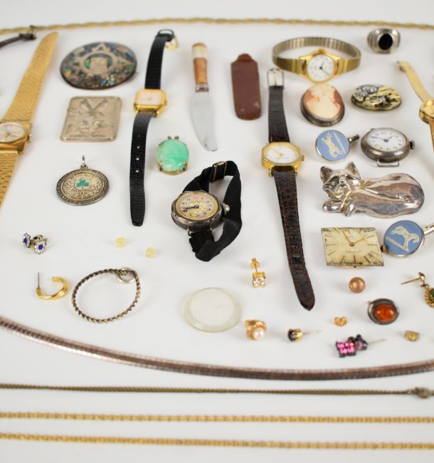 Jewellery, silver, watches, clocks, coins & bijouterie