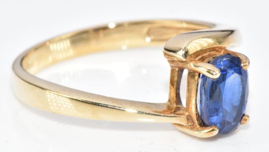 A 9ct gold ring set with an oval cut spinel, 2.6g, size N