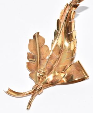 An 18k gold brooch in the form of leaves, 7.7g, 6cm