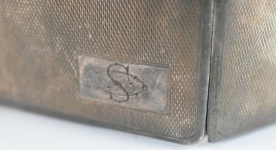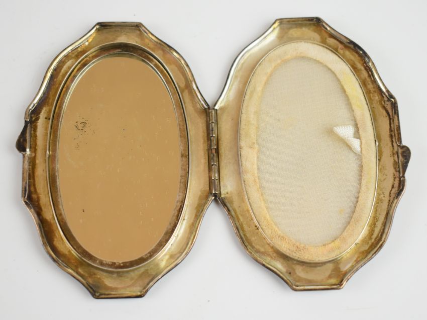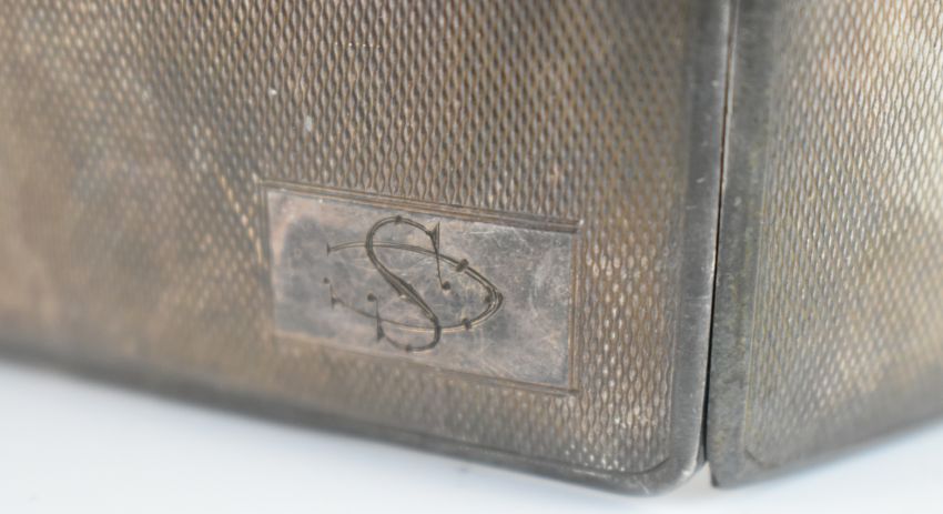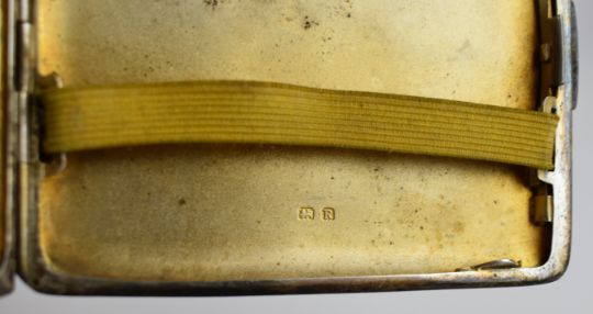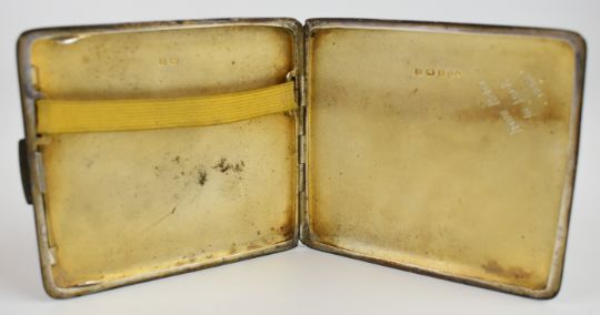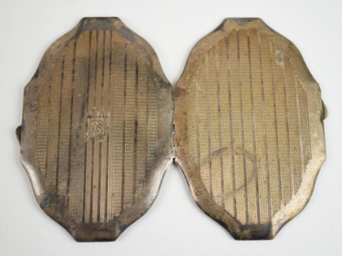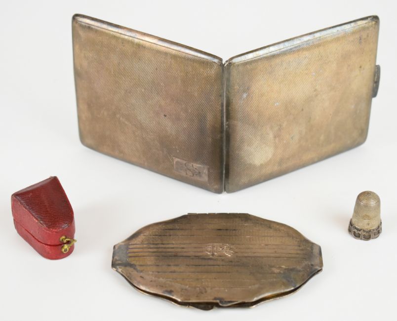 Art Deco hallmarked silver cigarette case, Birmingham 1941, maker Frederick Field Ltd, length 9.5cm, similar hallmarked silver compact and a cased silver plated thimble, weight of cigarette case and compact with mirror and mesh removed 182g